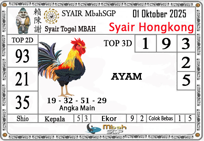 MbahSGP – Syair HK Mbah Sukro 01 Oktober 2025 – Gambar Syair Togel Hongkong hari ini kode teka teki buntut HKG malam ini yang mengandalkan keberuntungan pemainnya berikut kami rangkum bersama kumpulan prediksi angka jitu yang bekerjasama dengan prediktor angka yang sudah berpengalaman daolam melakukan kalkulasi angka yang akan keluar di jamin akan membawa anda merasakan sensasi mendapatkan JP 4D, 3D dan 2D . Semoga Semua Prediksi yang kami berikan dapat bermanfaat untuk anda para pecinta togel yang ada di dunia khususnya di Indonesia dan kami sangat berterima kasih apabila anda telah mempercayai kami sebagai team prediksi yang dapat di percaya.
