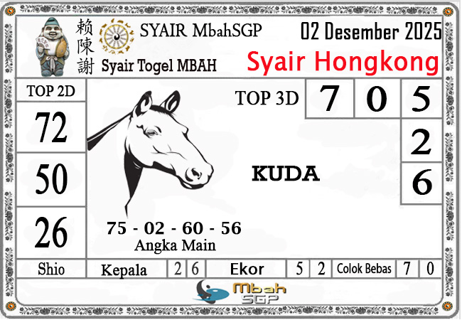 MbahSGP – Syair HK Mbah Sukro 02 Desember 2025 – Gambar Syair Togel Hongkong hari ini kode teka teki buntut HKG malam ini yang mengandalkan keberuntungan pemainnya berikut kami rangkum bersama kumpulan prediksi angka jitu yang bekerjasama dengan prediktor angka yang sudah berpengalaman daolam melakukan kalkulasi angka yang akan keluar di jamin akan membawa anda merasakan sensasi mendapatkan JP 4D, 3D dan 2D . Semoga Semua Prediksi yang kami berikan dapat bermanfaat untuk anda para pecinta togel yang ada di dunia khususnya di Indonesia dan kami sangat berterima kasih apabila anda telah mempercayai kami sebagai team prediksi yang dapat di percaya.