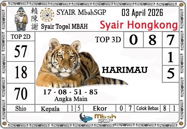 MbahSGP – Syair HK Mbah Sukro 03 April 2026 – Gambar Syair Togel Hongkong hari ini kode teka teki buntut HKG malam ini yang mengandalkan keberuntungan pemainnya berikut kami rangkum bersama kumpulan prediksi angka jitu yang bekerjasama dengan prediktor angka yang sudah berpengalaman daolam melakukan kalkulasi angka yang akan keluar di jamin akan membawa anda merasakan sensasi mendapatkan JP 4D, 3D dan 2D . Semoga Semua Prediksi yang kami berikan dapat bermanfaat untuk anda para pecinta togel yang ada di dunia khususnya di Indonesia dan kami sangat berterima kasih apabila anda telah mempercayai kami sebagai team prediksi yang dapat di percaya.