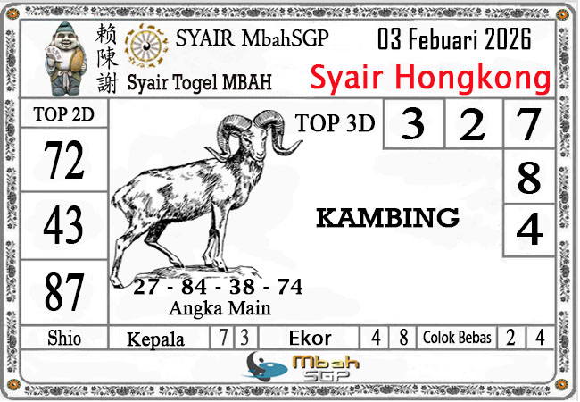 MbahSGPSyair HK Mbah Sukro 03 Febuari 2026 – Gambar Syair Togel Hongkong hari ini kode teka teki buntut HKG malam ini yang mengandalkan keberuntungan pemainnya berikut kami rangkum bersama kumpulan prediksi angka jitu yang bekerjasama dengan prediktor angka yang sudah berpengalaman daolam melakukan kalkulasi angka yang akan keluar di jamin akan membawa anda merasakan sensasi mendapatkan JP 4D, 3D dan 2D . Semoga Semua Prediksi yang kami berikan dapat bermanfaat untuk anda para pecinta togel yang ada di dunia khususnya di Indonesia dan kami sangat berterima kasih apabila anda telah mempercayai kami sebagai team prediksi yang dapat di percaya.