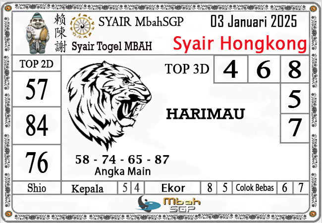 MbahSGP – Syair HK Mbah Sukro 03 Januari 2025 – Gambar Syair Togel Hongkong hari ini kode teka teki buntut HKG malam ini yang mengandalkan keberuntungan pemainnya berikut kami rangkum bersama kumpulan prediksi angka jitu yang bekerjasama dengan prediktor angka yang sudah berpengalaman daolam melakukan kalkulasi angka yang akan keluar di jamin akan membawa anda merasakan sensasi mendapatkan JP 4D, 3D dan 2D . Semoga Semua Prediksi yang kami berikan dapat bermanfaat untuk anda para pecinta togel yang ada di dunia khususnya di Indonesia dan kami sangat berterima kasih apabila anda telah mempercayai kami sebagai team prediksi yang dapat di percaya.