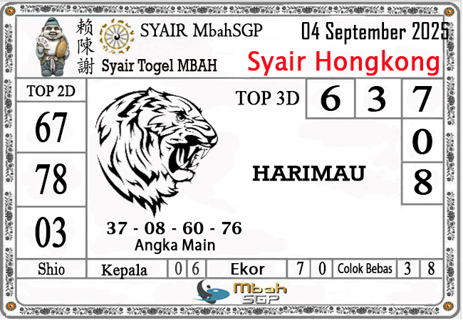 MbahSGP – Syair HK Mbah Sukro 04 September 2025 – Gambar Syair Togel Hongkong hari ini kode teka teki buntut HKG malam ini yang mengandalkan keberuntungan pemainnya berikut kami rangkum bersama kumpulan prediksi angka jitu yang bekerjasama dengan prediktor angka yang sudah berpengalaman daolam melakukan kalkulasi angka yang akan keluar di jamin akan membawa anda merasakan sensasi mendapatkan JP 4D, 3D dan 2D . Semoga Semua Prediksi yang kami berikan dapat bermanfaat untuk anda para pecinta togel yang ada di dunia khususnya di Indonesia dan kami sangat berterima kasih apabila anda telah mempercayai kami sebagai team prediksi yang dapat di percaya.