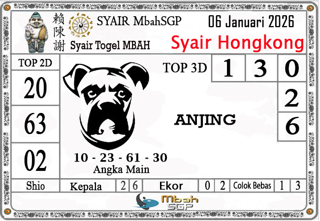 MbahSGP – Syair HK Mbah Sukro 06 Januari 2025 – Gambar Syair Togel Hongkong hari ini kode teka teki buntut HKG malam ini yang mengandalkan keberuntungan pemainnya berikut kami rangkum bersama kumpulan prediksi angka jitu yang bekerjasama dengan prediktor angka yang sudah berpengalaman daolam melakukan kalkulasi angka yang akan keluar di jamin akan membawa anda merasakan sensasi mendapatkan JP 4D, 3D dan 2D . Semoga Semua Prediksi yang kami berikan dapat bermanfaat untuk anda para pecinta togel yang ada di dunia khususnya di Indonesia dan kami sangat berterima kasih apabila anda telah mempercayai kami sebagai team prediksi yang dapat di percaya.
