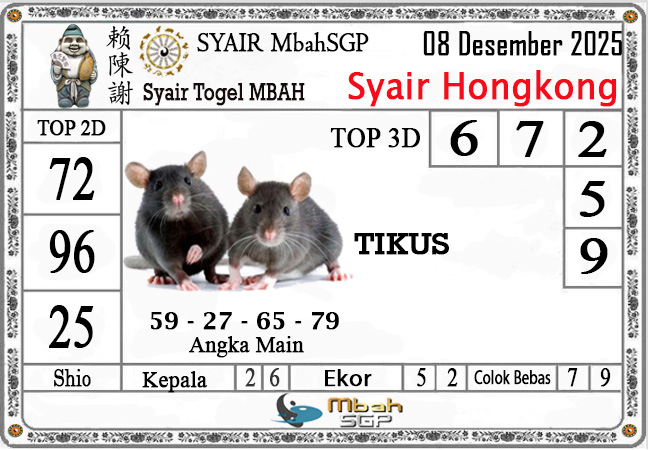 MbahSGP – Syair HK Mbah Sukro 08 Desember 2025 – Gambar Syair Togel Hongkong hari ini kode teka teki buntut HKG malam ini yang mengandalkan keberuntungan pemainnya berikut kami rangkum bersama kumpulan prediksi angka jitu yang bekerjasama dengan prediktor angka yang sudah berpengalaman daolam melakukan kalkulasi angka yang akan keluar di jamin akan membawa anda merasakan sensasi mendapatkan JP 4D, 3D dan 2D . Semoga Semua Prediksi yang kami berikan dapat bermanfaat untuk anda para pecinta togel yang ada di dunia khususnya di Indonesia dan kami sangat berterima kasih apabila anda telah mempercayai kami sebagai team prediksi yang dapat di percaya.