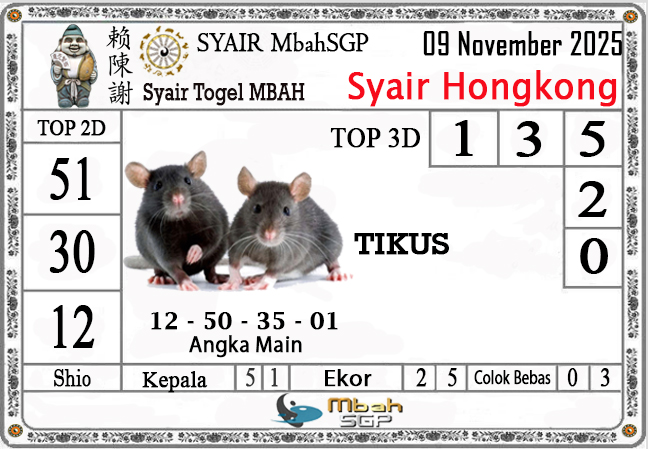 MbahSGPSyair HK Mbah Sukro 09 November 2025 – Gambar Syair Togel Hongkong hari ini kode teka teki buntut HKG malam ini yang mengandalkan keberuntungan pemainnya berikut kami rangkum bersama kumpulan prediksi angka jitu yang bekerjasama dengan prediktor angka yang sudah berpengalaman daolam melakukan kalkulasi angka yang akan keluar di jamin akan membawa anda merasakan sensasi mendapatkan JP 4D, 3D dan 2D . Semoga Semua Prediksi yang kami berikan dapat bermanfaat untuk anda para pecinta togel yang ada di dunia khususnya di Indonesia dan kami sangat berterima kasih apabila anda telah mempercayai kami sebagai team prediksi yang dapat di percaya.