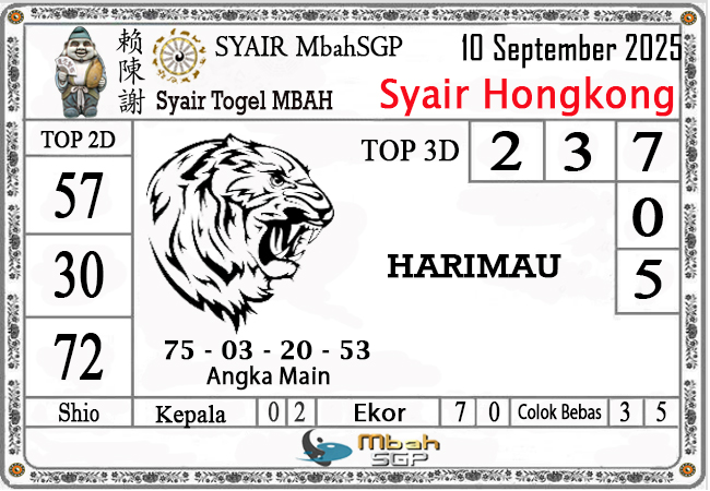 MbahSGP – Syair HK Mbah Sukro 10 September 2025 – Gambar Syair Togel Hongkong hari ini kode teka teki buntut HKG malam ini yang mengandalkan keberuntungan pemainnya berikut kami rangkum bersama kumpulan prediksi angka jitu yang bekerjasama dengan prediktor angka yang sudah berpengalaman daolam melakukan kalkulasi angka yang akan keluar di jamin akan membawa anda merasakan sensasi mendapatkan JP 4D, 3D dan 2D . Semoga Semua Prediksi yang kami berikan dapat bermanfaat untuk anda para pecinta togel yang ada di dunia khususnya di Indonesia dan kami sangat berterima kasih apabila anda telah mempercayai kami sebagai team prediksi yang dapat di percaya.