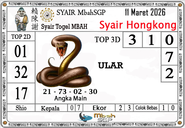 MbahSGP – Syair HK Mbah Sukro 11 Maret 2026 – Gambar Syair Togel Hongkong hari ini kode teka teki buntut HKG malam ini yang mengandalkan keberuntungan pemainnya berikut kami rangkum bersama kumpulan prediksi angka jitu yang bekerjasama dengan prediktor angka yang sudah berpengalaman daolam melakukan kalkulasi angka yang akan keluar di jamin akan membawa anda merasakan sensasi mendapatkan JP 4D, 3D dan 2D . Semoga Semua Prediksi yang kami berikan dapat bermanfaat untuk anda para pecinta togel yang ada di dunia khususnya di Indonesia dan kami sangat berterima kasih apabila anda telah mempercayai kami sebagai team prediksi yang dapat di percaya.