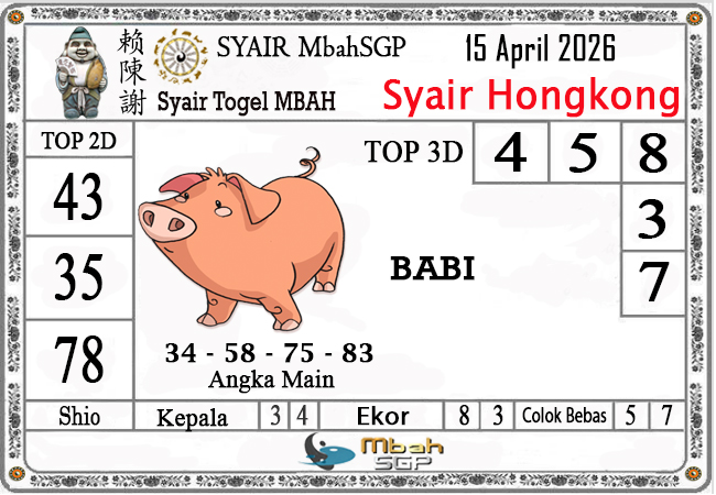 MbahSGP – Syair HK Mbah Sukro 15 April 2026 – Gambar Syair Togel Hongkong hari ini kode teka teki buntut HKG malam ini yang mengandalkan keberuntungan pemainnya berikut kami rangkum bersama kumpulan prediksi angka jitu yang bekerjasama dengan prediktor angka yang sudah berpengalaman daolam melakukan kalkulasi angka yang akan keluar di jamin akan membawa anda merasakan sensasi mendapatkan JP 4D, 3D dan 2D . Semoga Semua Prediksi yang kami berikan dapat bermanfaat untuk anda para pecinta togel yang ada di dunia khususnya di Indonesia dan kami sangat berterima kasih apabila anda telah mempercayai kami sebagai team prediksi yang dapat di percaya.