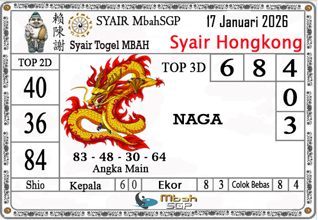 MbahSGP – Syair HK Mbah Sukro 17 Januari 2025 – Gambar Syair Togel Hongkong hari ini kode teka teki buntut HKG malam ini yang mengandalkan keberuntungan pemainnya berikut kami rangkum bersama kumpulan prediksi angka jitu yang bekerjasama dengan prediktor angka yang sudah berpengalaman daolam melakukan kalkulasi angka yang akan keluar di jamin akan membawa anda merasakan sensasi mendapatkan JP 4D, 3D dan 2D . Semoga Semua Prediksi yang kami berikan dapat bermanfaat untuk anda para pecinta togel yang ada di dunia khususnya di Indonesia dan kami sangat berterima kasih apabila anda telah mempercayai kami sebagai team prediksi yang dapat di percaya.