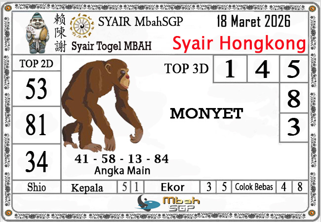 MbahSGP – Syair HK Mbah Sukro 18 Maret 2026 – Gambar Syair Togel Hongkong hari ini kode teka teki buntut HKG malam ini yang mengandalkan keberuntungan pemainnya berikut kami rangkum bersama kumpulan prediksi angka jitu yang bekerjasama dengan prediktor angka yang sudah berpengalaman daolam melakukan kalkulasi angka yang akan keluar di jamin akan membawa anda merasakan sensasi mendapatkan JP 4D, 3D dan 2D . Semoga Semua Prediksi yang kami berikan dapat bermanfaat untuk anda para pecinta togel yang ada di dunia khususnya di Indonesia dan kami sangat berterima kasih apabila anda telah mempercayai kami sebagai team prediksi yang dapat di percaya.