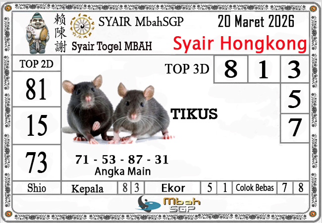 MbahSGP – Syair HK Mbah Sukro 20 Maret 2026 – Gambar Syair Togel Hongkong hari ini kode teka teki buntut HKG malam ini yang mengandalkan keberuntungan pemainnya berikut kami rangkum bersama kumpulan prediksi angka jitu yang bekerjasama dengan prediktor angka yang sudah berpengalaman daolam melakukan kalkulasi angka yang akan keluar di jamin akan membawa anda merasakan sensasi mendapatkan JP 4D, 3D dan 2D . Semoga Semua Prediksi yang kami berikan dapat bermanfaat untuk anda para pecinta togel yang ada di dunia khususnya di Indonesia dan kami sangat berterima kasih apabila anda telah mempercayai kami sebagai team prediksi yang dapat di percaya.