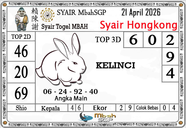 MbahSGPSyair HK Mbah Sukro 21 April 2026 – Gambar Syair Togel Hongkong hari ini kode teka teki buntut HKG malam ini yang mengandalkan keberuntungan pemainnya berikut kami rangkum bersama kumpulan prediksi angka jitu yang bekerjasama dengan prediktor angka yang sudah berpengalaman daolam melakukan kalkulasi angka yang akan keluar di jamin akan membawa anda merasakan sensasi mendapatkan JP 4D, 3D dan 2D . Semoga Semua Prediksi yang kami berikan dapat bermanfaat untuk anda para pecinta togel yang ada di dunia khususnya di Indonesia dan kami sangat berterima kasih apabila anda telah mempercayai kami sebagai team prediksi yang dapat di percaya.