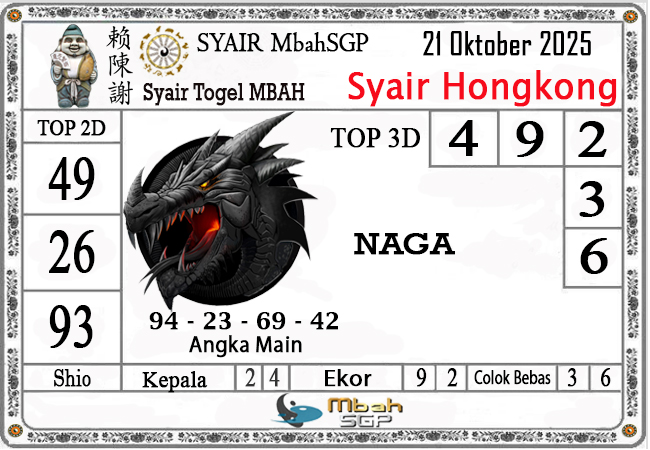 MbahSGPSyair HK Mbah Sukro 21 Oktober 2025 – Gambar Syair Togel Hongkong hari ini kode teka teki buntut HKG malam ini yang mengandalkan keberuntungan pemainnya berikut kami rangkum bersama kumpulan prediksi angka jitu yang bekerjasama dengan prediktor angka yang sudah berpengalaman daolam melakukan kalkulasi angka yang akan keluar di jamin akan membawa anda merasakan sensasi mendapatkan JP 4D, 3D dan 2D . Semoga Semua Prediksi yang kami berikan dapat bermanfaat untuk anda para pecinta togel yang ada di dunia khususnya di Indonesia dan kami sangat berterima kasih apabila anda telah mempercayai kami sebagai team prediksi yang dapat di percaya.