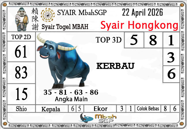MbahSGP – Syair HK Mbah Sukro 22 April 2026 – Gambar Syair Togel Hongkong hari ini kode teka teki buntut HKG malam ini yang mengandalkan keberuntungan pemainnya berikut kami rangkum bersama kumpulan prediksi angka jitu yang bekerjasama dengan prediktor angka yang sudah berpengalaman daolam melakukan kalkulasi angka yang akan keluar di jamin akan membawa anda merasakan sensasi mendapatkan JP 4D, 3D dan 2D . Semoga Semua Prediksi yang kami berikan dapat bermanfaat untuk anda para pecinta togel yang ada di dunia khususnya di Indonesia dan kami sangat berterima kasih apabila anda telah mempercayai kami sebagai team prediksi yang dapat di percaya.