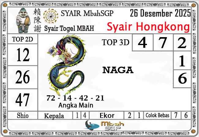 MbahSGP – Syair HK Mbah Sukro 26 Desember 2025 – Gambar Syair Togel Hongkong hari ini kode teka teki buntut HKG malam ini yang mengandalkan keberuntungan pemainnya berikut kami rangkum bersama kumpulan prediksi angka jitu yang bekerjasama dengan prediktor angka yang sudah berpengalaman daolam melakukan kalkulasi angka yang akan keluar di jamin akan membawa anda merasakan sensasi mendapatkan JP 4D, 3D dan 2D . Semoga Semua Prediksi yang kami berikan dapat bermanfaat untuk anda para pecinta togel yang ada di dunia khususnya di Indonesia dan kami sangat berterima kasih apabila anda telah mempercayai kami sebagai team prediksi yang dapat di percaya.