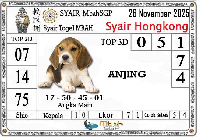 MbahSGP – Syair HK Mbah Sukro 26 November 2025 – Gambar Syair Togel Hongkong hari ini kode teka teki buntut HKG malam ini yang mengandalkan keberuntungan pemainnya berikut kami rangkum bersama kumpulan prediksi angka jitu yang bekerjasama dengan prediktor angka yang sudah berpengalaman daolam melakukan kalkulasi angka yang akan keluar di jamin akan membawa anda merasakan sensasi mendapatkan JP 4D, 3D dan 2D . Semoga Semua Prediksi yang kami berikan dapat bermanfaat untuk anda para pecinta togel yang ada di dunia khususnya di Indonesia dan kami sangat berterima kasih apabila anda telah mempercayai kami sebagai team prediksi yang dapat di percaya.