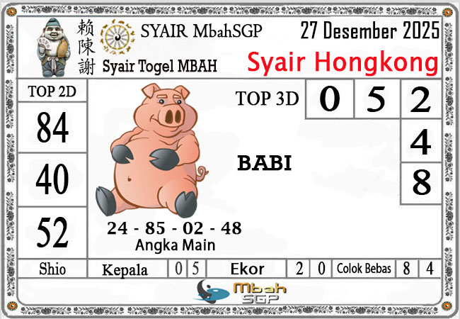 MbahSGP – Syair HK Mbah Sukro 27 Desember 2025 – Gambar Syair Togel Hongkong hari ini kode teka teki buntut HKG malam ini yang mengandalkan keberuntungan pemainnya berikut kami rangkum bersama kumpulan prediksi angka jitu yang bekerjasama dengan prediktor angka yang sudah berpengalaman daolam melakukan kalkulasi angka yang akan keluar di jamin akan membawa anda merasakan sensasi mendapatkan JP 4D, 3D dan 2D . Semoga Semua Prediksi yang kami berikan dapat bermanfaat untuk anda para pecinta togel yang ada di dunia khususnya di Indonesia dan kami sangat berterima kasih apabila anda telah mempercayai kami sebagai team prediksi yang dapat di percaya.