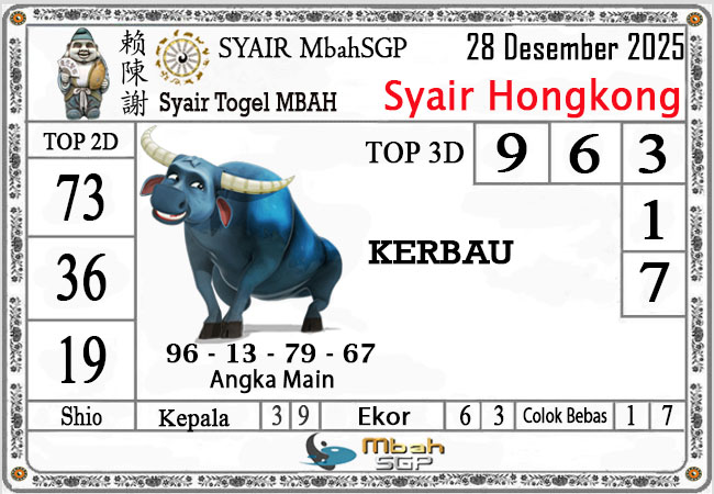 MbahSGP – Syair HK Mbah Sukro 28 Desember 2025 – Gambar Syair Togel Hongkong hari ini kode teka teki buntut HKG malam ini yang mengandalkan keberuntungan pemainnya berikut kami rangkum bersama kumpulan prediksi angka jitu yang bekerjasama dengan prediktor angka yang sudah berpengalaman daolam melakukan kalkulasi angka yang akan keluar di jamin akan membawa anda merasakan sensasi mendapatkan JP 4D, 3D dan 2D . Semoga Semua Prediksi yang kami berikan dapat bermanfaat untuk anda para pecinta togel yang ada di dunia khususnya di Indonesia dan kami sangat berterima kasih apabila anda telah mempercayai kami sebagai team prediksi yang dapat di percaya.