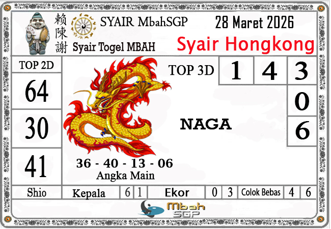 MbahSGP – Syair HK Mbah Sukro 28 Maret 2026 – Gambar Syair Togel Hongkong hari ini kode teka teki buntut HKG malam ini yang mengandalkan keberuntungan pemainnya berikut kami rangkum bersama kumpulan prediksi angka jitu yang bekerjasama dengan prediktor angka yang sudah berpengalaman daolam melakukan kalkulasi angka yang akan keluar di jamin akan membawa anda merasakan sensasi mendapatkan JP 4D, 3D dan 2D . Semoga Semua Prediksi yang kami berikan dapat bermanfaat untuk anda para pecinta togel yang ada di dunia khususnya di Indonesia dan kami sangat berterima kasih apabila anda telah mempercayai kami sebagai team prediksi yang dapat di percaya.