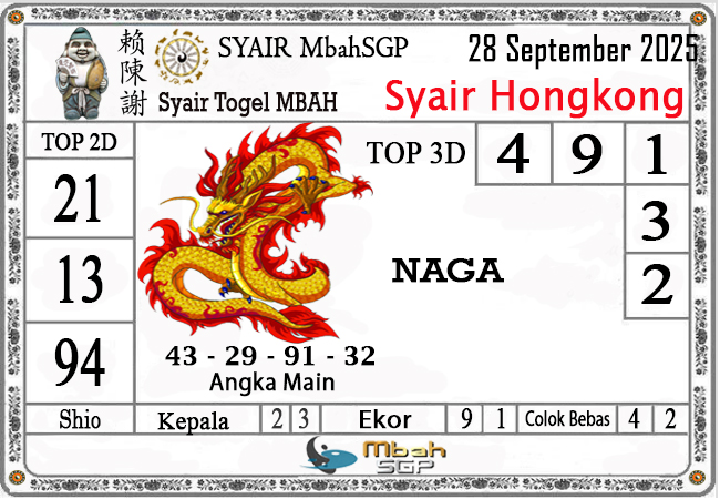 MbahSGP – Syair HK Mbah Sukro 28 September 2025 – Gambar Syair Togel Hongkong hari ini kode teka teki buntut HKG malam ini yang mengandalkan keberuntungan pemainnya berikut kami rangkum bersama kumpulan prediksi angka jitu yang bekerjasama dengan prediktor angka yang sudah berpengalaman daolam melakukan kalkulasi angka yang akan keluar di jamin akan membawa anda merasakan sensasi mendapatkan JP 4D, 3D dan 2D . Semoga Semua Prediksi yang kami berikan dapat bermanfaat untuk anda para pecinta togel yang ada di dunia khususnya di Indonesia dan kami sangat berterima kasih apabila anda telah mempercayai kami sebagai team prediksi yang dapat di percaya.