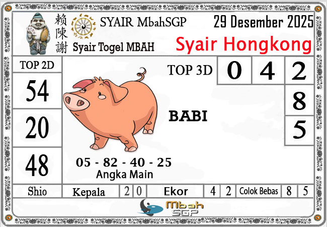 MbahSGP – Syair HK Mbah Sukro 29 Desember 2025 – Gambar Syair Togel Hongkong hari ini kode teka teki buntut HKG malam ini yang mengandalkan keberuntungan pemainnya berikut kami rangkum bersama kumpulan prediksi angka jitu yang bekerjasama dengan prediktor angka yang sudah berpengalaman daolam melakukan kalkulasi angka yang akan keluar di jamin akan membawa anda merasakan sensasi mendapatkan JP 4D, 3D dan 2D . Semoga Semua Prediksi yang kami berikan dapat bermanfaat untuk anda para pecinta togel yang ada di dunia khususnya di Indonesia dan kami sangat berterima kasih apabila anda telah mempercayai kami sebagai team prediksi yang dapat di percaya.