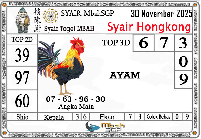 MbahSGP – Syair HK Mbah Sukro 30 November 2025 – Gambar Syair Togel Hongkong hari ini kode teka teki buntut HKG malam ini yang mengandalkan keberuntungan pemainnya berikut kami rangkum bersama kumpulan prediksi angka jitu yang bekerjasama dengan prediktor angka yang sudah berpengalaman daolam melakukan kalkulasi angka yang akan keluar di jamin akan membawa anda merasakan sensasi mendapatkan JP 4D, 3D dan 2D . Semoga Semua Prediksi yang kami berikan dapat bermanfaat untuk anda para pecinta togel yang ada di dunia khususnya di Indonesia dan kami sangat berterima kasih apabila anda telah mempercayai kami sebagai team prediksi yang dapat di percaya.