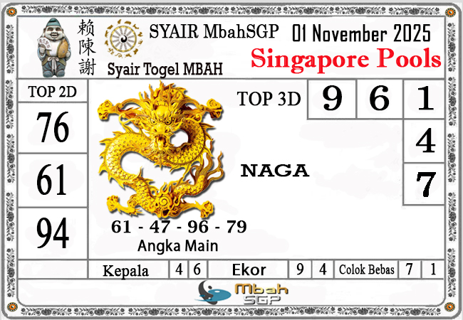 MbahSGP – Syair SGP Mbah Kewod 01 November 2025 – Syair Togel angka yang mengandalkan keberuntungan pemainnya berikut kami rangkum bersama kumpulan prediksi angka jitu yang bekerjasama dengan prediktor angka yang sudah berpengalaman dalam melakukan kalkulasi angka yang akan keluar di jamin akan membawa anda merasakan sensasi mendapatkan JP 4D, 3D dan 2D . Semoga Semua Prediksi yang kami berikan dapat bermanfaat untuk anda para pecinta togel yang ada di dunia khususnya di Indonesia dan kami sangat berterima kasih apabila anda telah mempercayai kami sebagai team prediksi yang dapat di percaya.