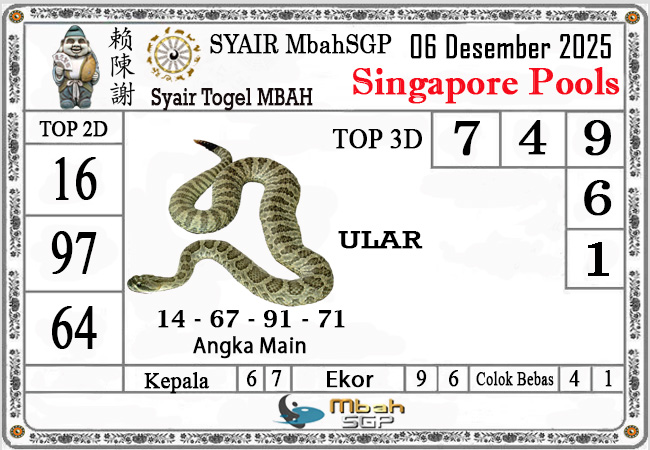MbahSGP – Syair SGP Mbah Kewod 06 Desember 2025 – Syair Togel angka yang mengandalkan keberuntungan pemainnya berikut kami rangkum bersama kumpulan prediksi angka jitu yang bekerjasama dengan prediktor angka yang sudah berpengalaman dalam melakukan kalkulasi angka yang akan keluar di jamin akan membawa anda merasakan sensasi mendapatkan JP 4D, 3D dan 2D . Semoga Semua Prediksi yang kami berikan dapat bermanfaat untuk anda para pecinta togel yang ada di dunia khususnya di Indonesia dan kami sangat berterima kasih apabila anda telah mempercayai kami sebagai team prediksi yang dapat di percaya.