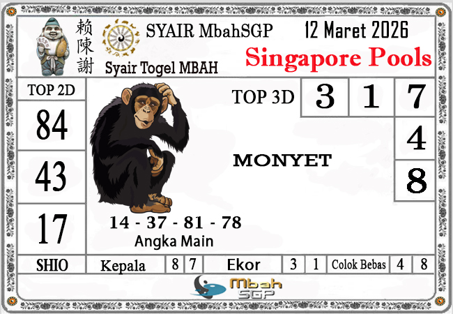 MbahSGP – Syair SGP Mbah Kewod 12 Maret 2026 – Syair Togel angka yang mengandalkan keberuntungan pemainnya berikut kami rangkum bersama kumpulan prediksi angka jitu yang bekerjasama dengan prediktor angka yang sudah berpengalaman dalam melakukan kalkulasi angka yang akan keluar di jamin akan membawa anda merasakan sensasi mendapatkan JP 4D, 3D dan 2D . Semoga Semua Prediksi yang kami berikan dapat bermanfaat untuk anda para pecinta togel yang ada di dunia khususnya di Indonesia dan kami sangat berterima kasih apabila anda telah mempercayai kami sebagai team prediksi yang dapat di percaya.