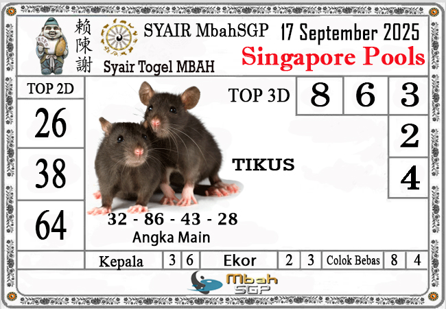 MbahSGP – Syair SGP Mbah Kewod 17 September 2025 – Syair Togel angka yang mengandalkan keberuntungan pemainnya berikut kami rangkum bersama kumpulan prediksi angka jitu yang bekerjasama dengan prediktor angka yang sudah berpengalaman dalam melakukan kalkulasi angka yang akan keluar di jamin akan membawa anda merasakan sensasi mendapatkan JP 4D, 3D dan 2D . Semoga Semua Prediksi yang kami berikan dapat bermanfaat untuk anda para pecinta togel yang ada di dunia khususnya di Indonesia dan kami sangat berterima kasih apabila anda telah mempercayai kami sebagai team prediksi yang dapat di percaya.