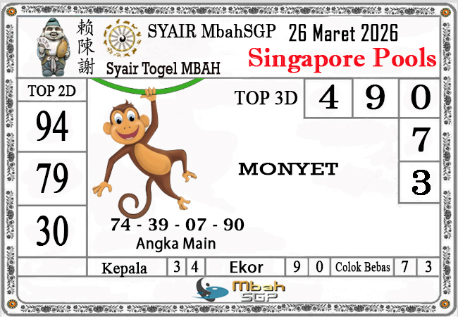 MbahSGP – Syair SGP Mbah Kewod 26 Maret 2026 – Syair Togel angka yang mengandalkan keberuntungan pemainnya berikut kami rangkum bersama kumpulan prediksi angka jitu yang bekerjasama dengan prediktor angka yang sudah berpengalaman dalam melakukan kalkulasi angka yang akan keluar di jamin akan membawa anda merasakan sensasi mendapatkan JP 4D, 3D dan 2D . Semoga Semua Prediksi yang kami berikan dapat bermanfaat untuk anda para pecinta togel yang ada di dunia khususnya di Indonesia dan kami sangat berterima kasih apabila anda telah mempercayai kami sebagai team prediksi yang dapat di percaya.