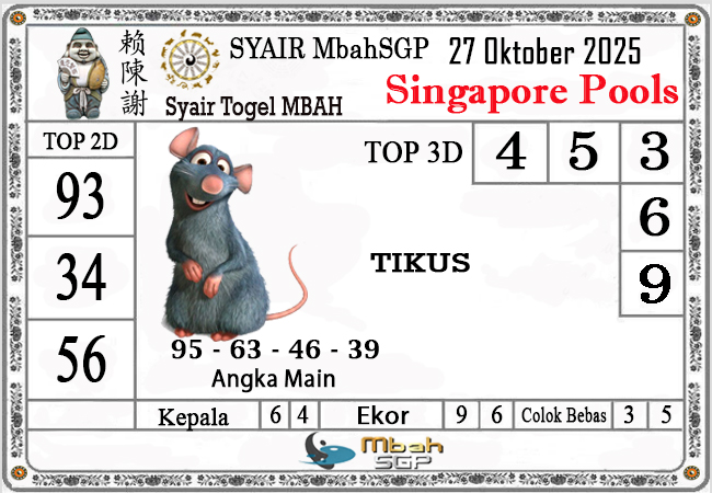 MbahSGP – Syair SGP Mbah Kewod 27 Oktober 2025 – Syair Togel angka yang mengandalkan keberuntungan pemainnya berikut kami rangkum bersama kumpulan prediksi angka jitu yang bekerjasama dengan prediktor angka yang sudah berpengalaman dalam melakukan kalkulasi angka yang akan keluar di jamin akan membawa anda merasakan sensasi mendapatkan JP 4D, 3D dan 2D . Semoga Semua Prediksi yang kami berikan dapat bermanfaat untuk anda para pecinta togel yang ada di dunia khususnya di Indonesia dan kami sangat berterima kasih apabila anda telah mempercayai kami sebagai team prediksi yang dapat di percaya.