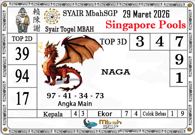 MbahSGP – Syair SGP Mbah Kewod 29 Maret 2026 – Syair Togel angka yang mengandalkan keberuntungan pemainnya berikut kami rangkum bersama kumpulan prediksi angka jitu yang bekerjasama dengan prediktor angka yang sudah berpengalaman dalam melakukan kalkulasi angka yang akan keluar di jamin akan membawa anda merasakan sensasi mendapatkan JP 4D, 3D dan 2D . Semoga Semua Prediksi yang kami berikan dapat bermanfaat untuk anda para pecinta togel yang ada di dunia khususnya di Indonesia dan kami sangat berterima kasih apabila anda telah mempercayai kami sebagai team prediksi yang dapat di percaya.