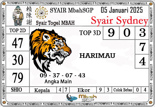 Syair Sydney Mbah Sugeng 05-01-2025