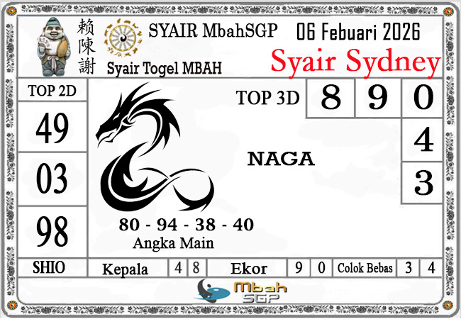 MbahSGP – Syair Sydney Mbah Sugeng 06-02-2026 – prediksi togel sydney, bocoran togel sydney, gambar syair togel sydney, syair sydney, prediksi togel wla sd, gambar syair mbahsgp, rumusan togel sydney, sydneypools. Syair mbahsgp merupakan brand syair yang telah lama dikenal oleh kalangan pemain lama didalam bermain togel. Syair mbahsgp telah lama datang dikalangan masyarakat. Oleh dikarenakan telah dipercayai banyak kalangan, maka kita tidak akan diberikan kekecewaan dalam bermain di togel sydney , Syair mbahsgp sydney yang kita sajikan ini merupakan rumusan angka dari sang prediksitor handal.