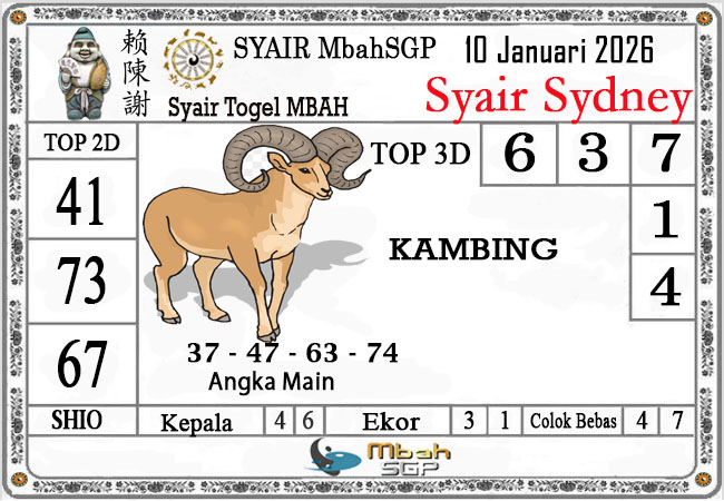 MbahSGP – Syair Sydney Mbah Sugeng 10-01-2025 – prediksi togel sydney, bocoran togel sydney, gambar syair togel sydney, syair sydney, prediksi togel wla sd, gambar syair mbahsgp, rumusan togel sydney, sydneypools. Syair mbahsgp merupakan brand syair yang telah lama dikenal oleh kalangan pemain lama didalam bermain togel. Syair mbahsgp telah lama datang dikalangan masyarakat. Oleh dikarenakan telah dipercayai banyak kalangan, maka kita tidak akan diberikan kekecewaan dalam bermain di togel sydney , Syair mbahsgp sydney yang kita sajikan ini merupakan rumusan angka dari sang prediksitor handal.
