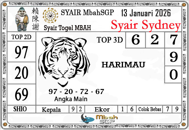 MbahSGP Syair Sydney Mbah Sugeng 13-01-2025 – prediksi togel sydney, bocoran togel sydney, gambar syair togel sydney, syair sydney, prediksi togel wla sd, gambar syair mbahsgp, rumusan togel sydney, sydneypools. Syair mbahsgp merupakan brand syair yang telah lama dikenal oleh kalangan pemain lama didalam bermain togel. Syair mbahsgp telah lama datang dikalangan masyarakat. Oleh dikarenakan telah dipercayai banyak kalangan, maka kita tidak akan diberikan kekecewaan dalam bermain di togel sydney , Syair mbahsgp sydney yang kita sajikan ini merupakan rumusan angka dari sang prediksitor handal.