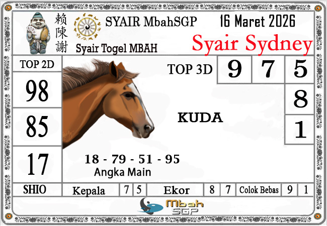 Syair Sydney Mbah Sugeng 16-03-2026