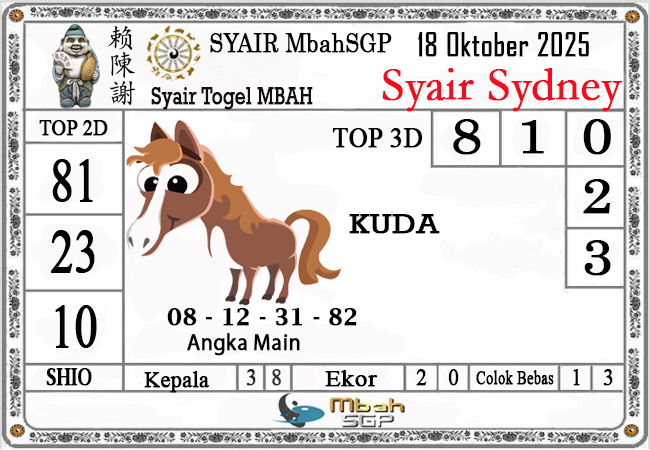 Syair Sydney Mbah Sugeng 18-10-2025