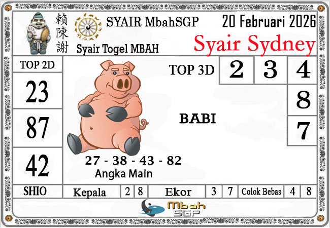 MbahSGP – Syair Sydney Mbah Sugeng 20-02-2026 – prediksi togel sydney, bocoran togel sydney, gambar syair togel sydney, syair sydney, prediksi togel wla sd, gambar syair mbahsgp, rumusan togel sydney, sydneypools. Syair mbahsgp merupakan brand syair yang telah lama dikenal oleh kalangan pemain lama didalam bermain togel. Syair mbahsgp telah lama datang dikalangan masyarakat. Oleh dikarenakan telah dipercayai banyak kalangan, maka kita tidak akan diberikan kekecewaan dalam bermain di togel sydney , Syair mbahsgp sydney yang kita sajikan ini merupakan rumusan angka dari sang prediksitor handal.
