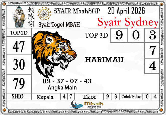MbahSGP – Syair Sydney Mbah Sugeng 20-04-2026 – prediksi togel sydney, bocoran togel sydney, gambar syair togel sydney, syair sydney, prediksi togel wla sd, gambar syair mbahsgp, rumusan togel sydney, sydneypools. Syair mbahsgp merupakan brand syair yang telah lama dikenal oleh kalangan pemain lama didalam bermain togel. Syair mbahsgp telah lama datang dikalangan masyarakat. Oleh dikarenakan telah dipercayai banyak kalangan, maka kita tidak akan diberikan kekecewaan dalam bermain di togel sydney , Syair mbahsgp sydney yang kita sajikan ini merupakan rumusan angka dari sang prediksitor handal.