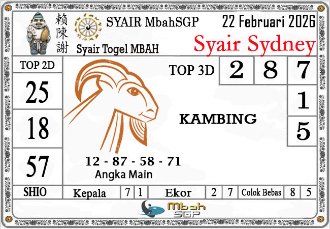 Syair Sydney Mbah Sugeng 22-02-2026