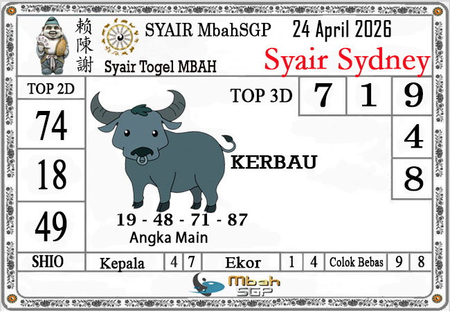 MbahSGP – Syair Sydney Mbah Sugeng 24-04-2026 – prediksi togel sydney, bocoran togel sydney, gambar syair togel sydney, syair sydney, prediksi togel wla sd, gambar syair mbahsgp, rumusan togel sydney, sydneypools. Syair mbahsgp merupakan brand syair yang telah lama dikenal oleh kalangan pemain lama didalam bermain togel. Syair mbahsgp telah lama datang dikalangan masyarakat. Oleh dikarenakan telah dipercayai banyak kalangan, maka kita tidak akan diberikan kekecewaan dalam bermain di togel sydney , Syair mbahsgp sydney yang kita sajikan ini merupakan rumusan angka dari sang prediksitor handal.
