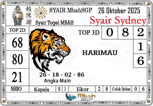 MbahSGP – Syair Sydney Mbah Sugeng 26-10-2025 – prediksi togel sydney, bocoran togel sydney, gambar syair togel sydney, syair sydney, prediksi togel wla sd, gambar syair mbahsgp, rumusan togel sydney, sydneypools. Syair mbahsgp merupakan brand syair yang telah lama dikenal oleh kalangan pemain lama didalam bermain togel. Syair mbahsgp telah lama datang dikalangan masyarakat. Oleh dikarenakan telah dipercayai banyak kalangan, maka kita tidak akan diberikan kekecewaan dalam bermain di togel sydney , Syair mbahsgp sydney yang kita sajikan ini merupakan rumusan angka dari sang prediksitor handal.