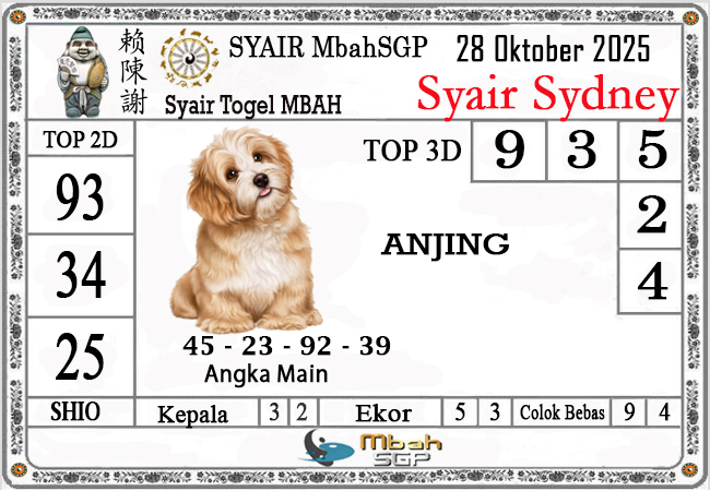 MbahSGP – Syair Sydney Mbah Sugeng 28-10-2025 – prediksi togel sydney, bocoran togel sydney, gambar syair togel sydney, syair sydney, prediksi togel wla sd, gambar syair mbahsgp, rumusan togel sydney, sydneypools. Syair mbahsgp merupakan brand syair yang telah lama dikenal oleh kalangan pemain lama didalam bermain togel. Syair mbahsgp telah lama datang dikalangan masyarakat. Oleh dikarenakan telah dipercayai banyak kalangan, maka kita tidak akan diberikan kekecewaan dalam bermain di togel sydney , Syair mbahsgp sydney yang kita sajikan ini merupakan rumusan angka dari sang prediksitor handal.